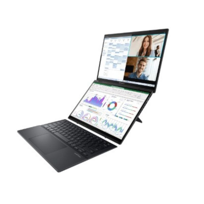 Dua layar OLED 3K 14 inci dengan bezel tipis ditempatkan dalam rangka ringan seberat 1,35 kg (tanpa keyboard). Desain ini tidak hanya menghadirkan pengalaman visual yang imersif, tetapi juga memastikan portabilitas luar biasa. Dilengkapi stand multi-sudut terintegrasi dan perangkat lunak cerdas, Zenbook DUO memberikan kelancaran penggunaan di berbagai skenario sekaligus mengoptimalkan pemanfaatan ruang. Selain itu, keyboard Bluetooth yang terhubung dengan pogo pin, touchpad, dan layar sentuh semakin memaksimalkan produktivitas.