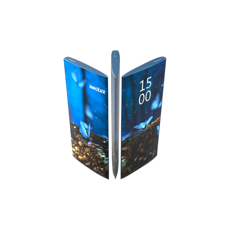 Bagian depan dan belakang terdiri dari dua layar bezel yang sangat tipis.