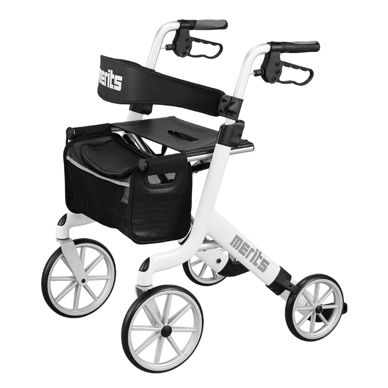 Merits W469 adalah alat bantu jalan 4-roda berbahan Aluminium dirancang untuk pengguna yang membutuhkan bantuan untuk berjalan. Alat ini dapat digunakan terutama pada orang tua yang perlu berjalan di dalam dan di luar ruangan ataupun berbelanja. W469 menyediakan pengguna untuk berjalan di luar ruangan, dan dirancang dengan tempat duduk bagi pengguna untuk beristirahat saat dibutuhkan. Produk ini telah menjalani analisis mekanis pada tahap awal desain untuk mensimulasikan bagaimana manusia dapat mencapai daya dorong dan ergonomis terbaik saat mendorong alat bantu jalan; roda depan menggunakan roda universal 10"", dan roda belakang menggunakan 8" roda, untuk melewati berbagai medan dan rintangan. Serta untuk memenuhi dan melampaui persyaratan ringan, desain struktur produk dioptimalkan dan menggunakan bahan aluminium kelas penerbangan, beratnya hanya 6,5 ​​KG sehingga orang tua dapat dengan mudah membawanya. Desain modular dari setiap bagian memungkinkan banyak produk untuk dibagikan, diproduksi secara massal, dan pengurangan biaya. Selain itu demi estetika, garis rem diubah menjadi desain tersembunyi.