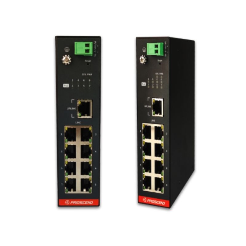 Industrial 8-port PoE Long Reach Switch / Extender Proscend 708EPI-DC dirancang untuk ekstensi jaringan AIoT jarak jauh hingga 800 meter, mampu menyalurkan data dan daya melalui satu kabel, melampaui batas standar Ethernet 100 meter.