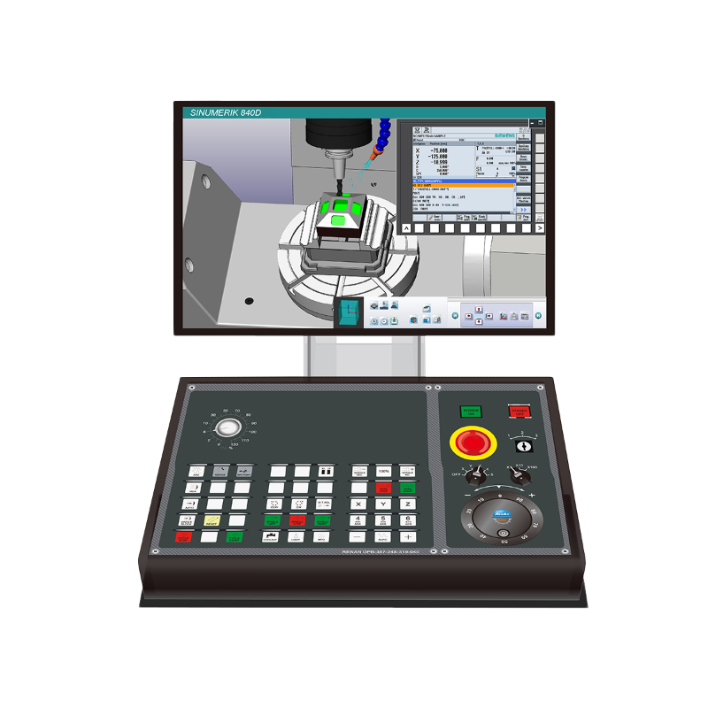 [Pembelajaran cerdas]: Seperti melatih pilot menggunakan simulator penerbangan, perusahaan RenAn menggunakan simulator CNC untuk melatih siswa ataupun operator mesin menjadi masinis. Panel industri simulator CNC ini tetap memiliki fungsi yang sama dengan mesin asli sehingga siswa dapat melatih keterampilan pengoperasiannya secara terus menerus.