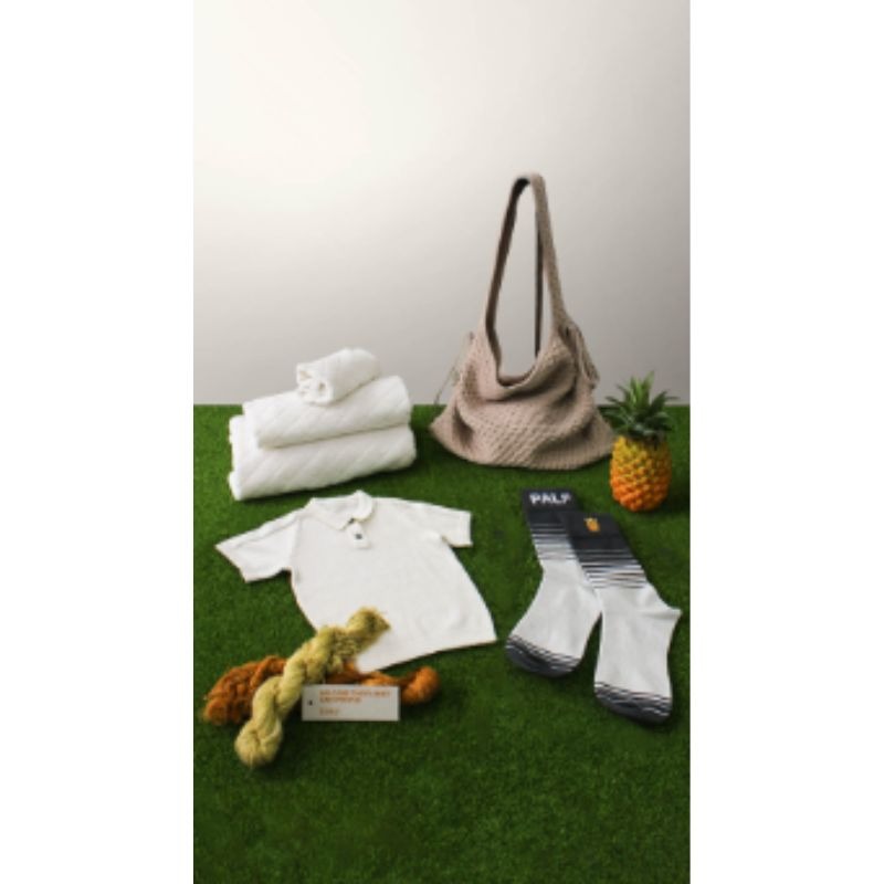 Pineapple Leaves Fiber (PALF) adalah tekstil inovatif yang terbuat dari serat daun nanas, memberikan tekstur alami dan kering seperti linen. Serat ini bernapas, menyerap keringat, dan tahan kerutan, menjadikannya pilihan ideal untuk dicampur dengan serat lain dalam pembuatan pakaian, aksesori, kaus kaki, dan handuk.